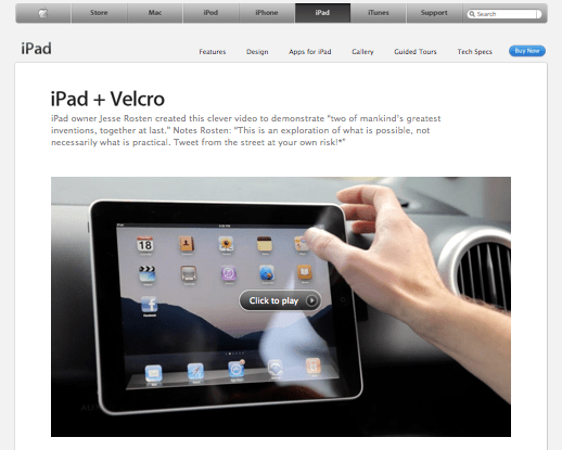 Logo após o lançamento do iPad, Jesse Rosten publicava em um video, sua idéia genial de juntar duas grandes invenções dos últimos tempos, o iPad e o Velcro!