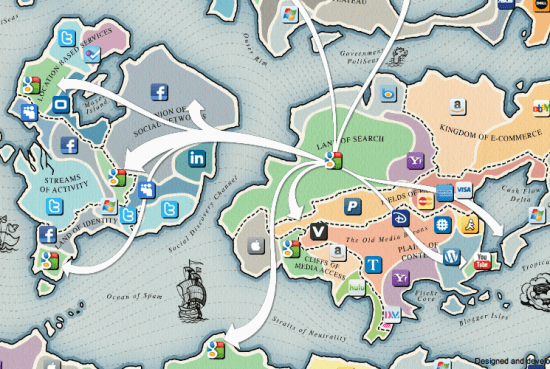 Para quem gosta de infográficos, vai aí mais um interessante, chamado em inglês “Battle for Network Economy”. Mostra as várias arenas e players como se fosse um jogo de WAR. Para usar a interatividade e mais informações, clique no link acima e visite o infográfico interativo no site do Web 2.0 Summit .